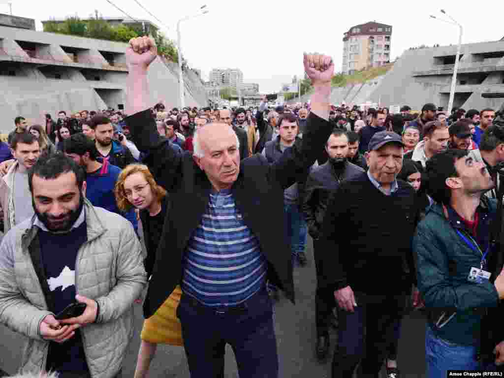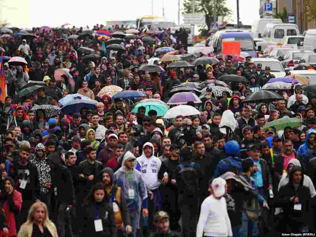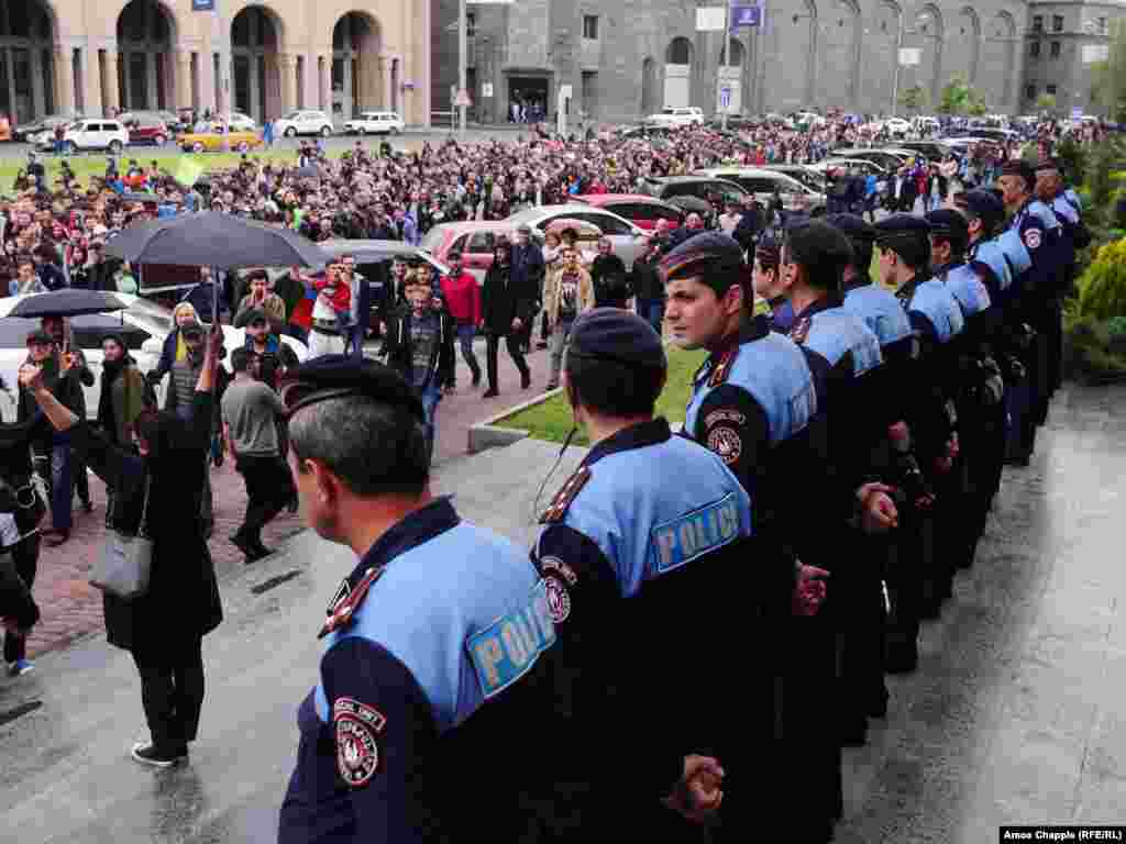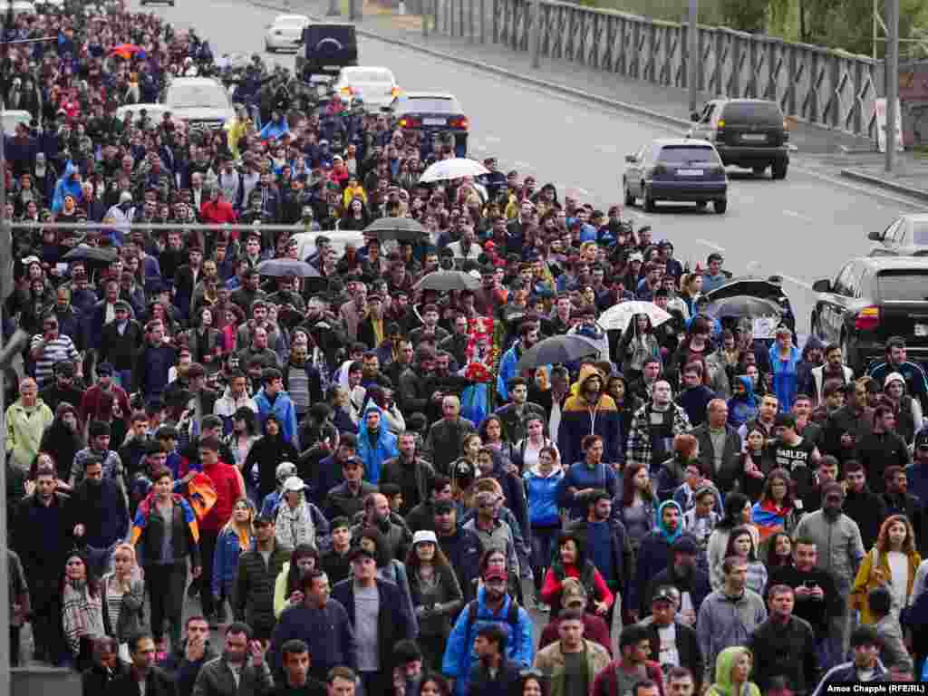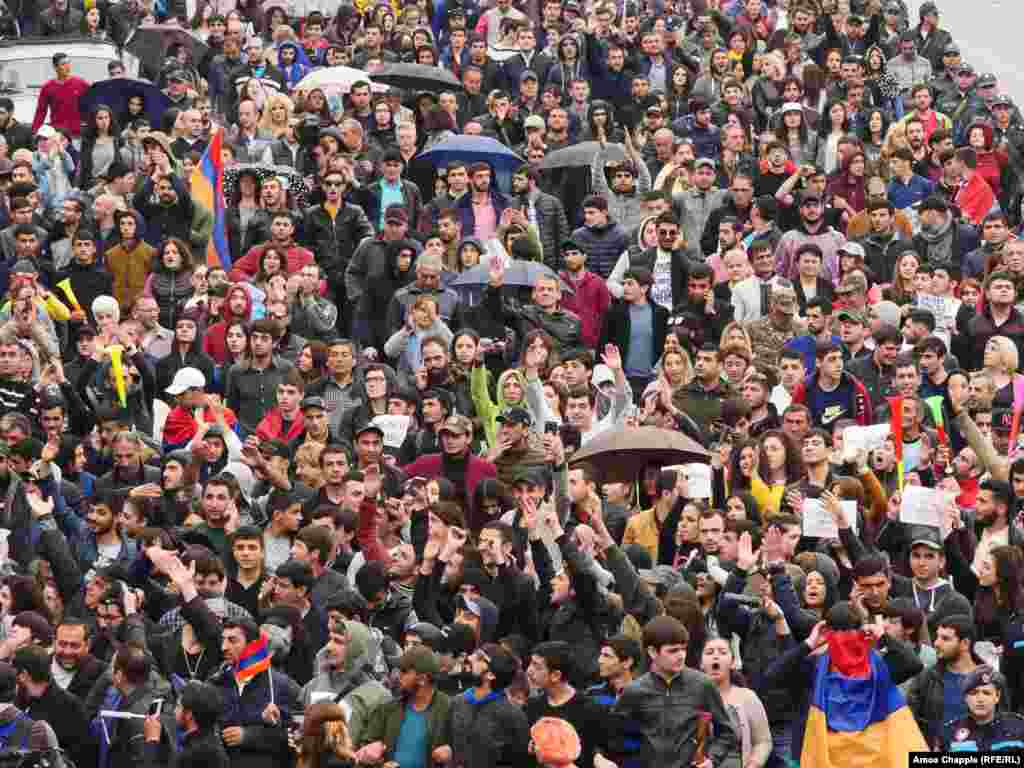 Hundreds of demonstrators took to the streets of the Armenian capital early on April 20 for an eighth straight day against what they see as longtime former Armenian President Serzh Sarkisian attempt to cement his hold on power. (Photos by RFE/RL's Amos Chapple)