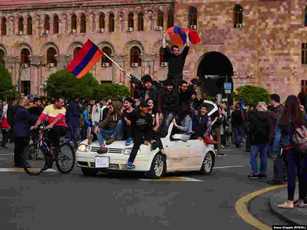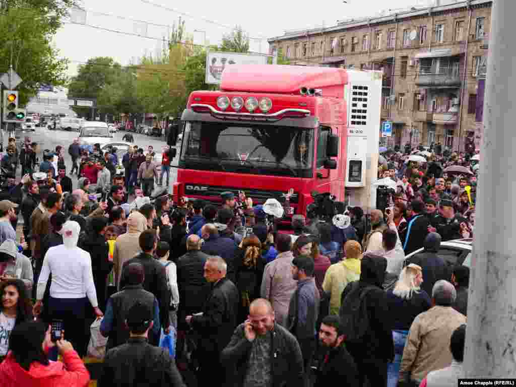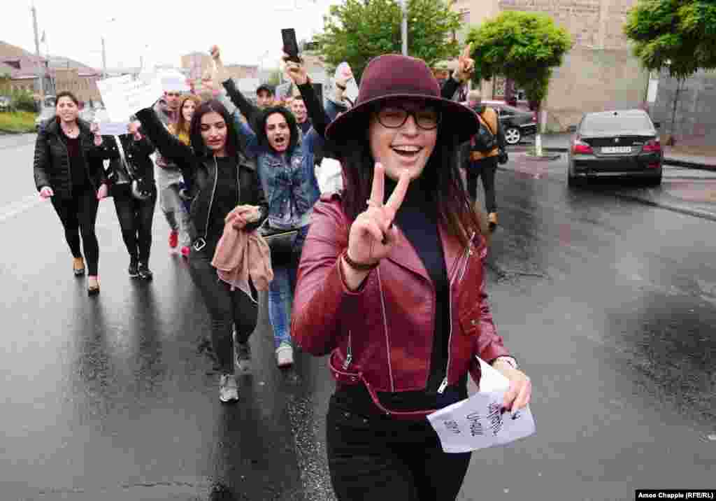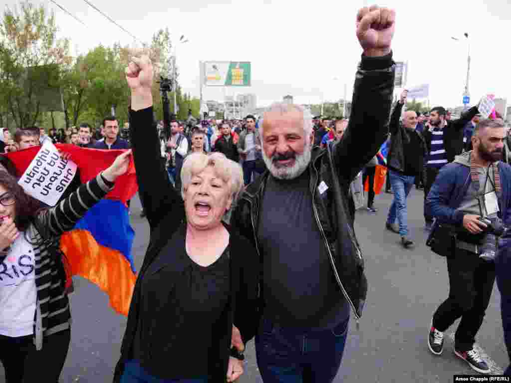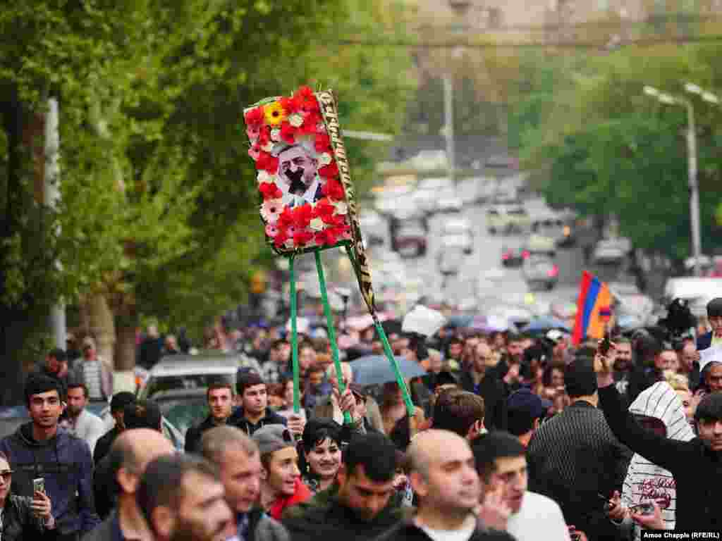 Hundreds of demonstrators took to the streets of the Armenian capital early on April 20 for an eighth straight day against what they see as longtime former Armenian President Serzh Sarkisian attempt to cement his hold on power. (Photos by RFE/RL's Amos Chapple)