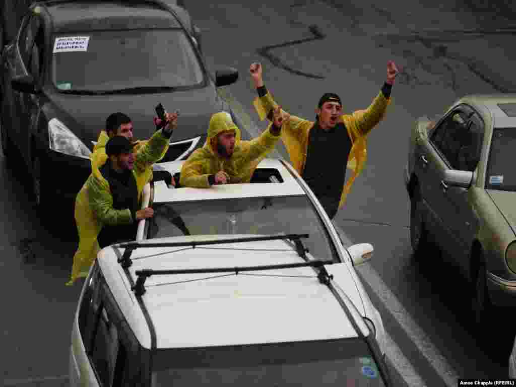 The sign on the car says: "Deny Serzh by honking your horn."