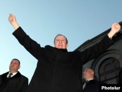 In a speech to the crowd before it entered the square, HAK leader and former President Levon Ter-Petrossian repeated his belief that Sarkisian will soon face the kind of popular uprising that has rocked Egypt and other Arab countries.