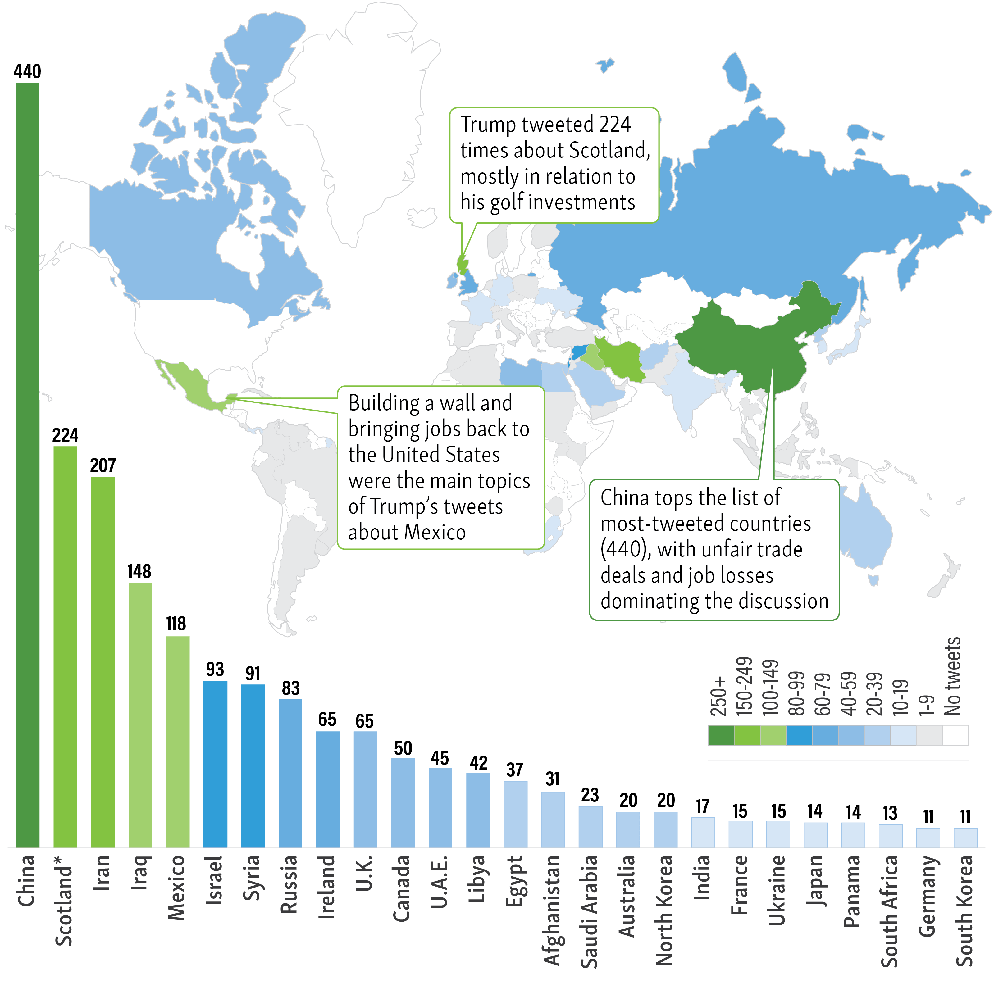 Donald Trump has tweeted about 26 countries more than 10 times since his Twitter account was created in March 2009.*