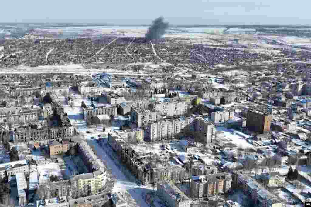 Drone footage captured on February 13 shows Bakhmut, another devastated city in eastern Ukraine. It has been the scene of some of the bloodiest fighting of the war.