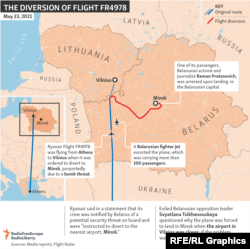 Polish Prime Minister Mateusz Morawiecki earlier asked the European Council's president to discuss immediate sanctions against Belarus during the May 24 meeting, and French Foreign Minister Jean-Yves Le Drian said the incident requires a "strong and united" response from the European Union.