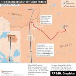 Leaders also urged the bloc's airlines to avoid Belarus's airspace and called on the UN's International Civil Aviation Organization (ICAO) to urgently investigate the incident, which it called "unprecedented and unacceptable." The UN agency said its 36 diplomatic representatives will meet on May 27 to discuss Belarus's actions.