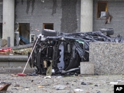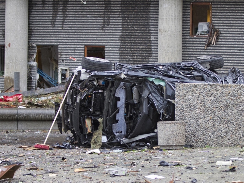 Public broadcaster NRK showed video of a blackened car lying on its side amid the wreckage.