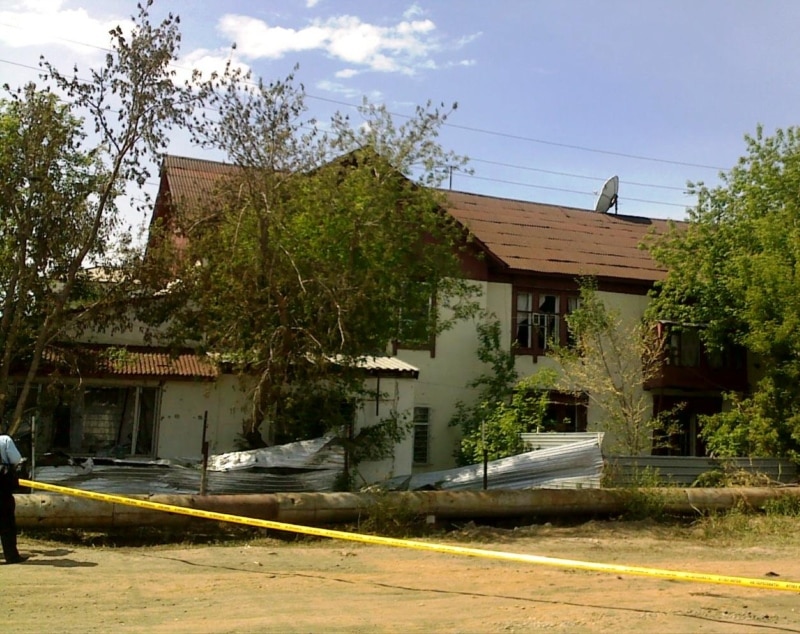 A slightly damaged home across the street from where the May 24 blast took place in Astana.