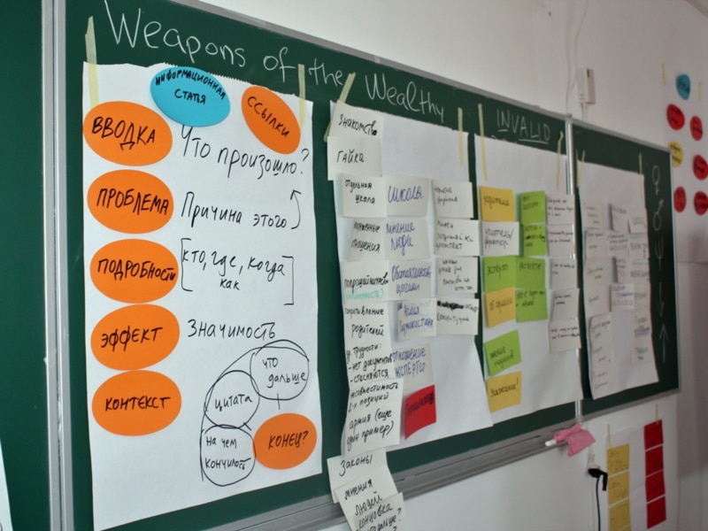 Yefimova's class are undergoing an intensive 10-week program in which they study the basics of TV, print, and radio journalism, together with meaty issues like consumer rights, health, and the importance of local media.