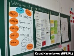 It's a sunny day in central Bishkek as instructor Natasha Yefimova greets her small group of summer-school students, all young journalists from across Central Asia.