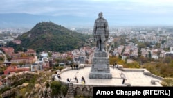 Protestors gathered in the central Bulgarian city of Plovdiv on January 17 after news emerged of local politicians seeking to dismantle a hilltop monument to the Soviet Red Army known as "Alyosha."