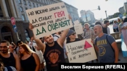 She was among the crowds of protesters who gathered on August 7 and 8 in the capital, Sofia, after lawmakers adopted an amendment on August 7 that would ban the "propaganda, promotion, or incitement" in the education system of "ideas and views related to nontraditional sexual orientation and/or gender identity other than the biological one."