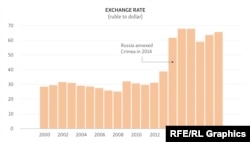 The Russian ruble has been losing value against the U.S. dollar as a result of falling oil prices and Western economic sanctions that were imposed after the annexation of Crimea in 2014.