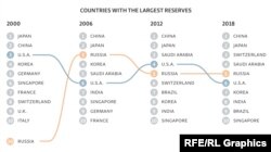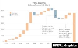 In 2000, Russia's reserves (including gold) were worth approximately $27 billion based on current exchange rates, comparable to the reserves of Poland or Norway at that time. In 2018, Russia had almost $460 billion -- the fifth-largest reserves in the world.