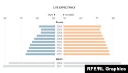 However, it's still more than 10 years shorter than the lifespan of Russian women and 14 years shorter than that of Japanese men.