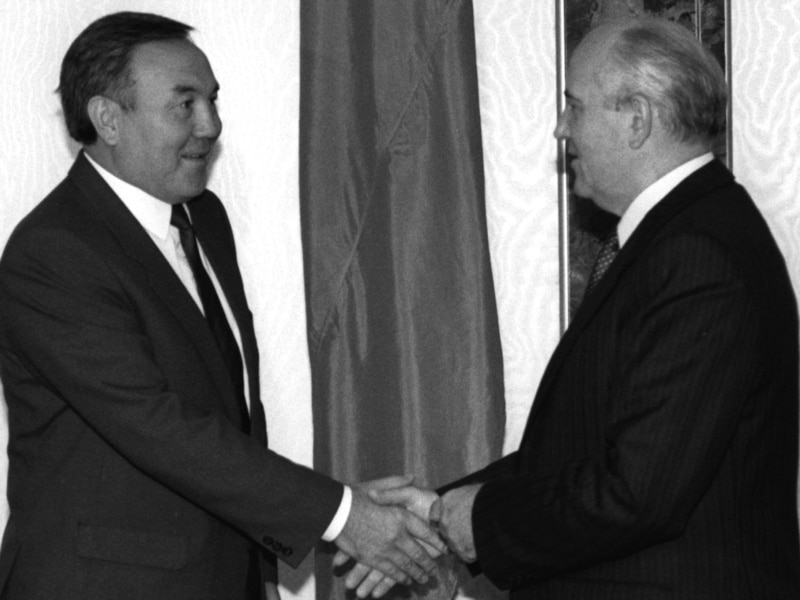 Soviet leader Mikhail Gorbachev (right) had promised Kazakh President Nursultan Nazarbaev (left) the post of prime minister of the Soviet Union.