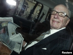 News Corporation CEO Rupert Murdoch holds a copy of "The Sun" as he is driven away from his flat in central London on July 11.