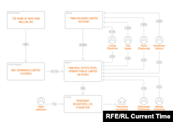 Shares in one Cyprus firm that controls a hotel in Crimea are held by a British subsidiary of the U.S.-based Bank of New York Mellon Inc., the world's largest depository bank, with assets amounting to $33.1 trillion as of December 2018.