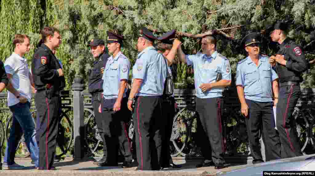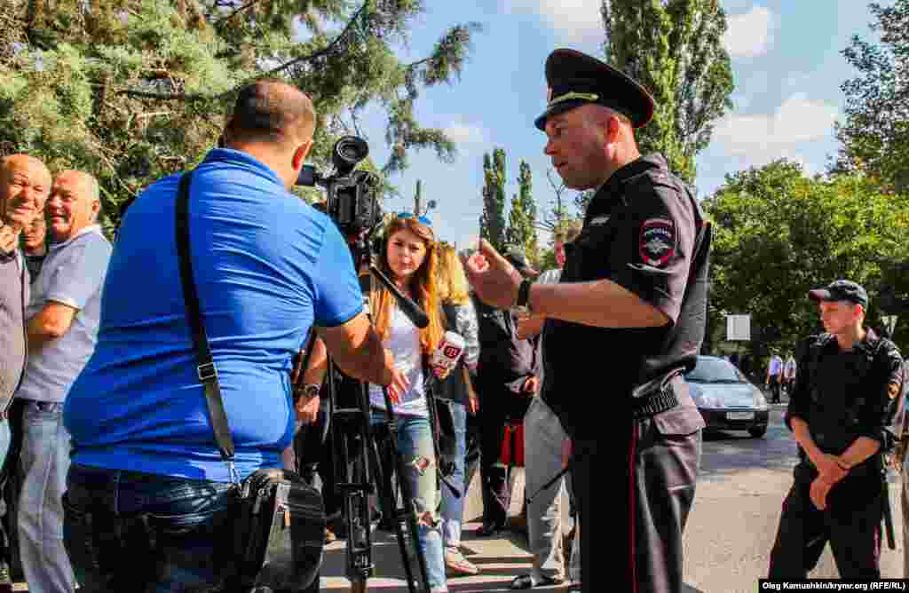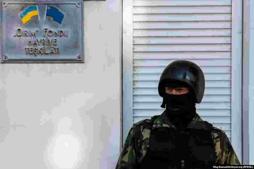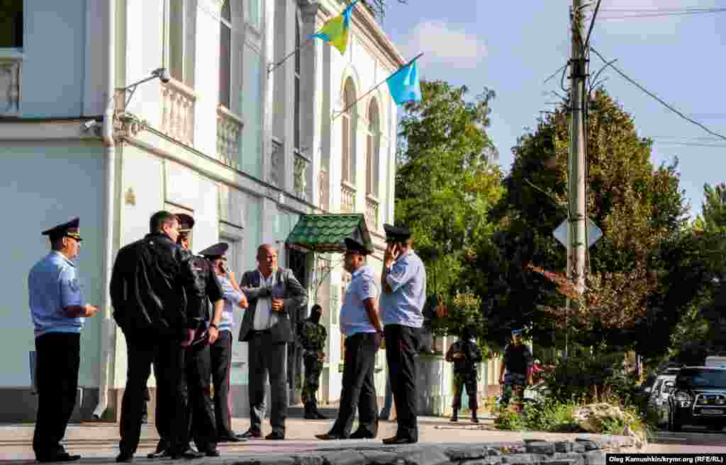 Russian security forces have raided the Crimean Tatar assembly and the home of one of its members. Reporting from the site, an RFE/RL correspondent said 10 police officers and six armed, masked men in military uniform surrounded the Mejlis in Crimea's capital, Simferopol, on September 16 and were not letting anyone enter or leave the building. The Mejlis is the self-governing body of the Crimean Tatars, most of whom opposed Russia's annexation of Crimea from Ukraine in March and many of whom boycotted local elections on September 14. Police inside the building on September 16 were said to be searching the offices of the Crimean Tatar newspaper "Avdet" (Return). Police also searched the home of Mejlis member Eskender Bariyev and confiscated his computers. On September 15, three masked, armed men removed a Ukrainian national flag from the Mejlis building.