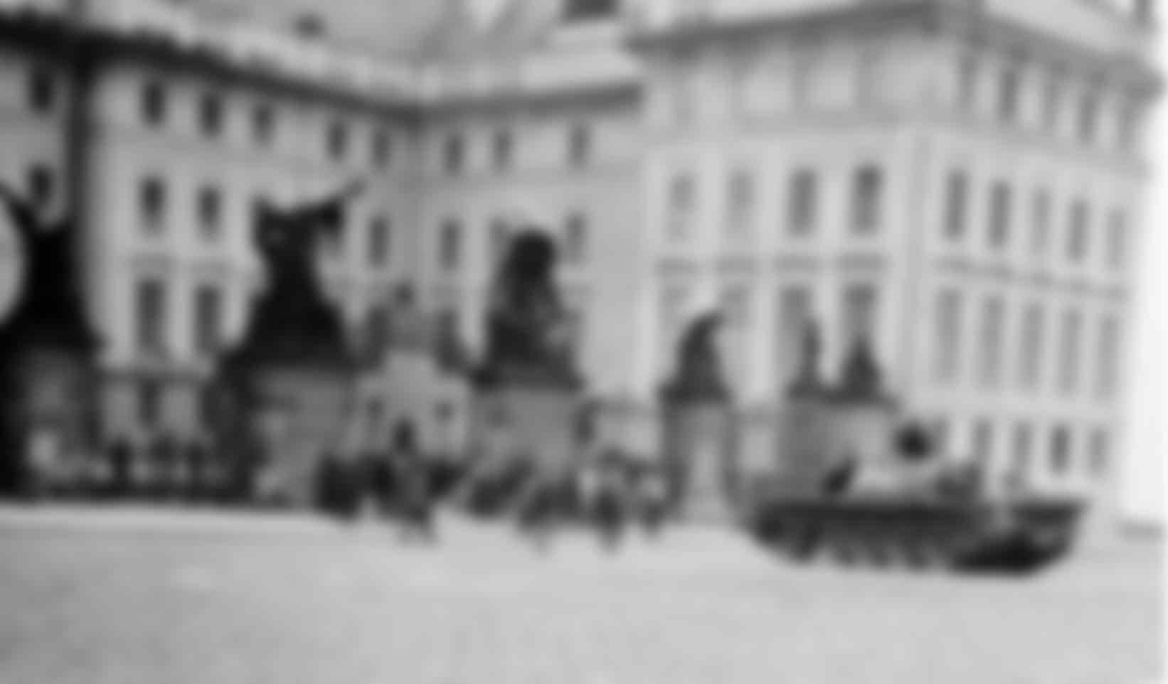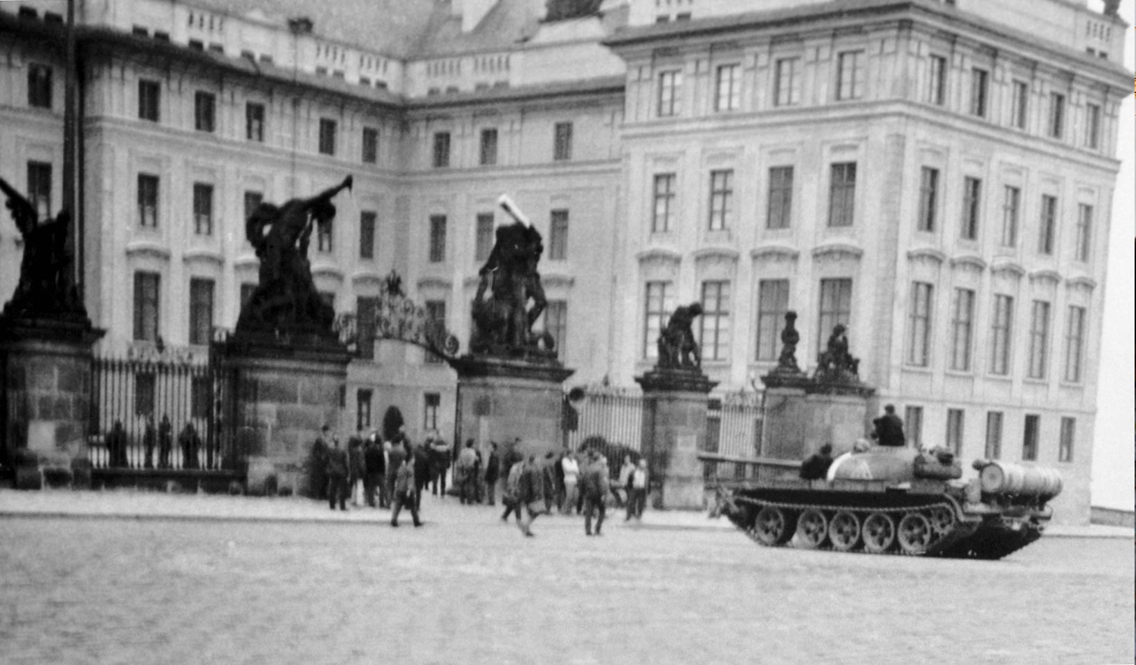 A Soviet tank aims its barrel squarely at the Matthias Gate of Prague Castle. CTK
