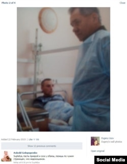 The group zeroes in on a blurred photograph posted on February 22 by Usov on his VKontakte profile that appears to show him lying bandaged in a hospital bed with Shoigu standing by him.