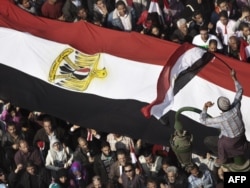 Near Tahrir Square on February 8, some 300 Telecom Egypt employees waved banners and chanted for higher pay. Protesters said the demonstration was not connected to anti-Mubarak demonstrations but rather, aimed at improving the lives of the mostly state-owned landline operator's employees.