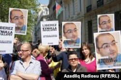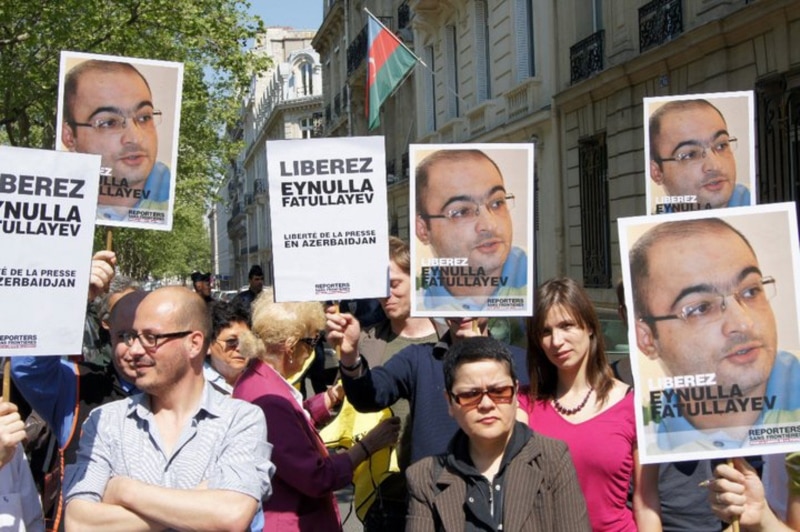 Protesters in France rallying in support of Fatullayev earlier this year. The journalist had been the subject of an intense international campaign for his release.