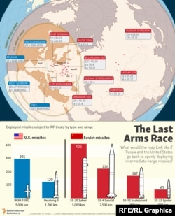 President Donald Trump on February 1 announced the U.S. plan to withdraw from the INF Treaty, saying it would suspend its obligations the following day and inform Russia that it would effectively withdraw from the accord in six months' time -- on August 2.