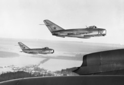 In late 1950, the formidable Soviet MiG-15 fighter jets (pictured here in a 1963 file photo) appeared in the skies above North Korea. Many of the jets were flown by ace Soviet pilots who reportedly dressed in Chinese uniforms. The Kremlin consistently denied that Soviet pilots were involved in aerial combat above Korea, even as U.S. pilots heard them swearing in Russian over the radio during dogfights.