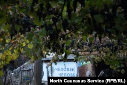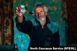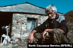Kazbeg sits in front of his home.