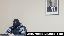 Once inside a police station and sitting alongside dozens of other young protesters, he was confronted with the striking image of the masked policeman seated under the portrait of Putin. Markov said the policeman "is shy, afraid to show his face, he is sitting in a balaclava indoors, the room is hot."