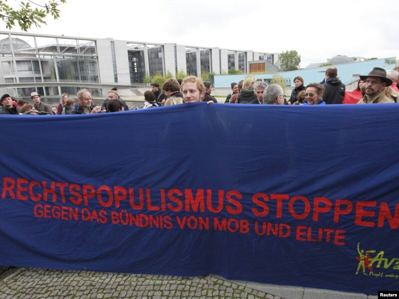 Germans protest against the controversial book "Deutschland schaff sich ab (Germany does away with itself)," written by an executive at Germany's Central Bank, accusing Muslim immigrants of being poorly educated and dumbing-down German society.