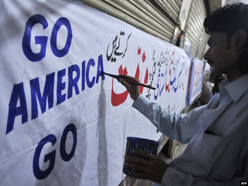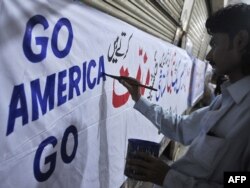 A Pakistani painter prepares an anti-U.S. and anti-Facebook banner at a workshop in Karachi during protestst in May.