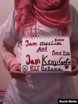 Another woman wrote,"Peace. I am Muslim and Free Him. I Am Kenji Goto."