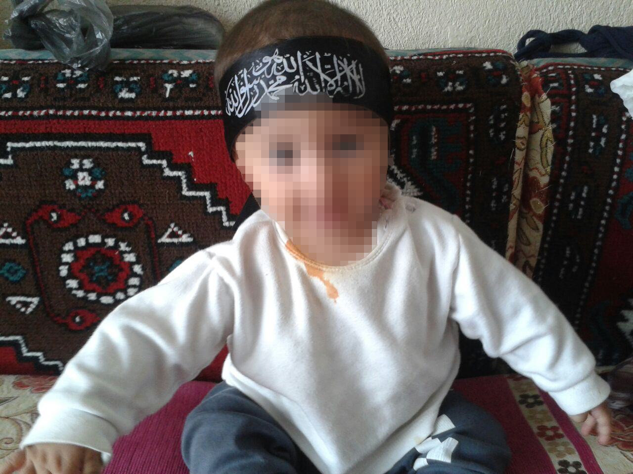 His father, an Islamic State (IS) fighter from Kazakhstan named Artyom, has tied a black headband around his son's forehead. Like the IS flag, it bears the Islamic shahada, the Islamic statement of faith, in white.