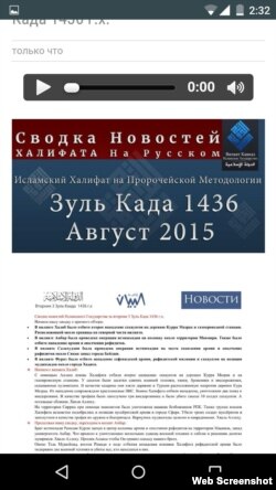 And a splash screen for the app refers to "Vilayat Kavkaz," the name IS has given to its so-called province in the North Caucasus even though the extremist group does not control any territory in the Russian Federation.