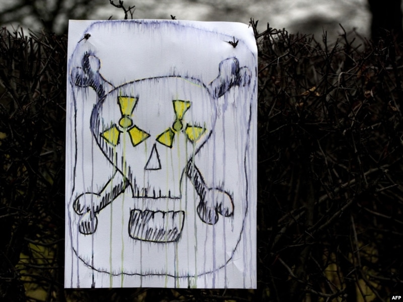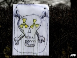 A skull placard left by antinuclear protesters near the Reichstag and the Chancellory in Berlin on March 14.