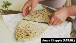 Ara Zada, the co-author of a book on Armenian cuisine, told RFE/RL the original recipe for jingalov hats calls for "26 herbs and greens" to be folded into a package of thin dough that is then pushed flat and cooked until lightly charred on both sides.