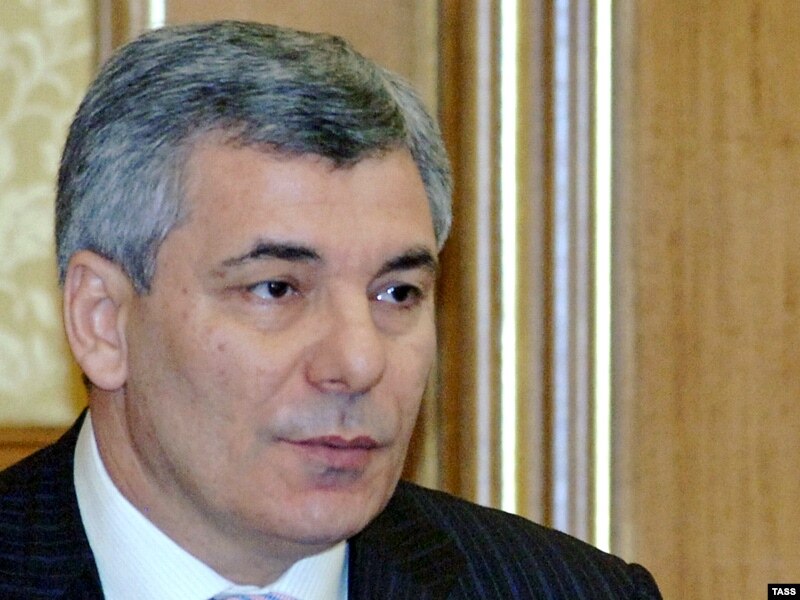 Kabardino-Balkaria President Arsen Kanokov (left) attends the funeral of republic mufti Anas Pshikhachev on December 16 in Nalchik.