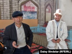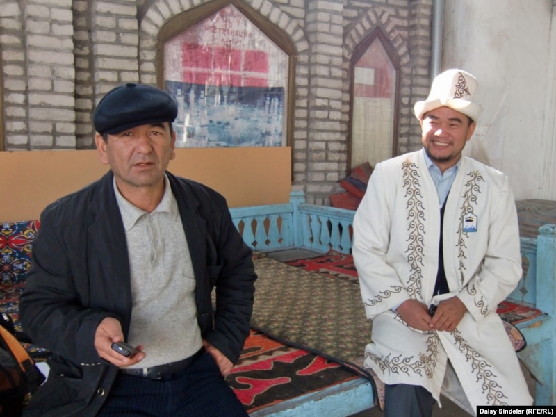 Khashimjan-haji Umarov (left) and Suyun-haji Kalykov, Osh's leading Muslim spiritual authority, at a small mosque in an Uzbek neighborhood in central Osh
