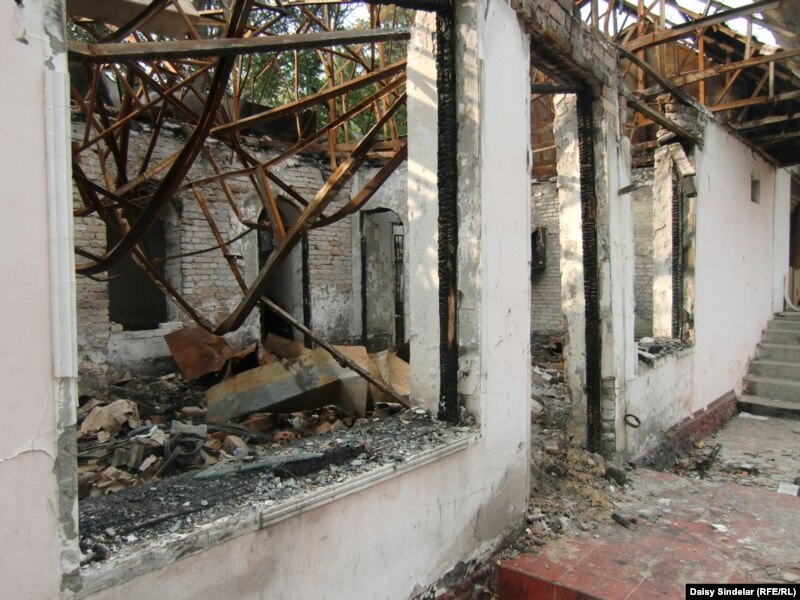 She says she was returning from a trip to Bishkek when she learned about the violence breaking out in Osh. Her children had managed to escape from the family home with help from local police. But the house, the first in a row of new buildings in a Kyrgyz housing development, was torched. Tochubekova says construction workers at the site told her later the attackers were Uzbek.