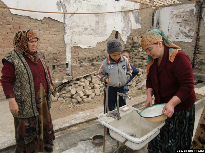 Umida, rinsing a bowl of rice in a makeshift sink as her two young sons hover nearby, says only the state can help repair relations in the south in the wake of the June violence. But she says such an outcome is unlikely.