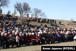 Ten yurts -- traditional Kyrgyz tents -- were erected in front of the building and ribbons with the names of the victims were tied to trees. Participants of the gathering – led by President Roza Otunbaeva -- then marched toward Ala-Too Square.