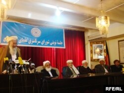 Maulvi Qayamuddin Kashaf (left) with members of the conservative Afghan Ulema Council, a national clerics' body (file photo)