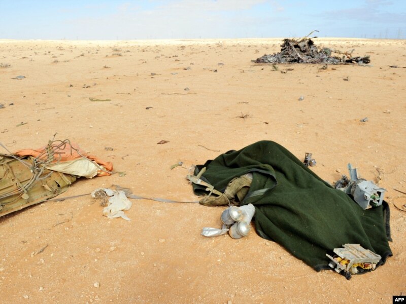 Journalists were taken to the scene of the wreckage and were shown two bodies thought to be pilots loyal to Qaddafi.
