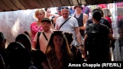 “It’s so strange she would identify as Russian,” the man replied, adjusting his sunglasses. “They really have nothing to be proud of.”