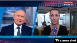 As the moderator talks about the incredible popularity of this annual event, an SMS comment flashes on the screen: "Why are all of these 'Direct Lines' so staged? Is VVP [Vladimir Vladimirovich Putin] scared of the truth?"
