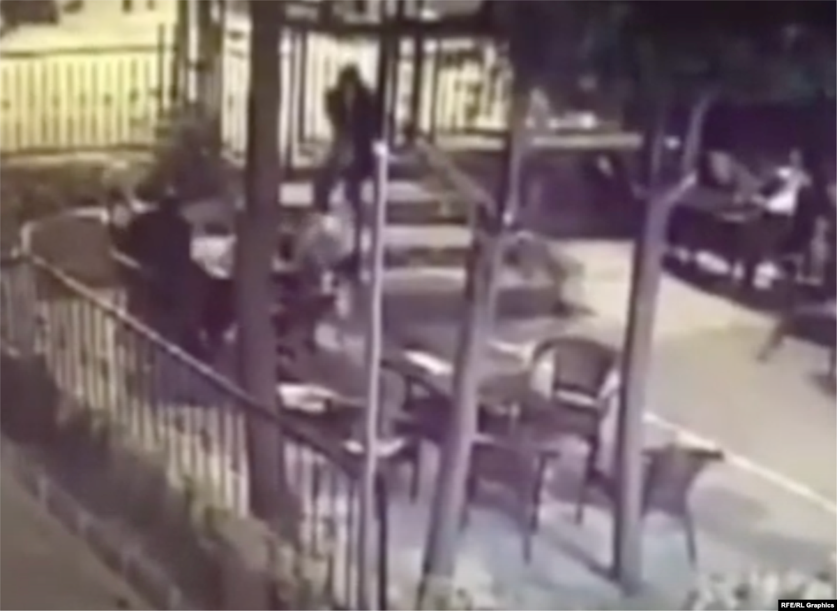 Security-camera footage shows him descending the stairs of the outdoor cafe toward Saimaiti shortly after 8 p.m., raising his weapon, and firing several times. He then sprints back up the stairs and climbs into a black vehicle that speeds away.