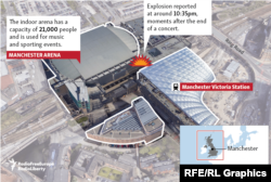 Witnesses at the 20,000-capacity Manchester Arena said they heard a "massive explosion" at around 10:35 p.m. local time on May 22, moments after U.S. singer Ariana Grande had finished performing.