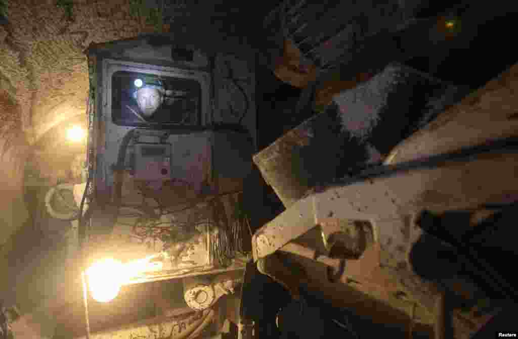 Employees work inside a Uralkali potash mine near the city of Berezniki in the Perm region, close to the Ural Mountains.