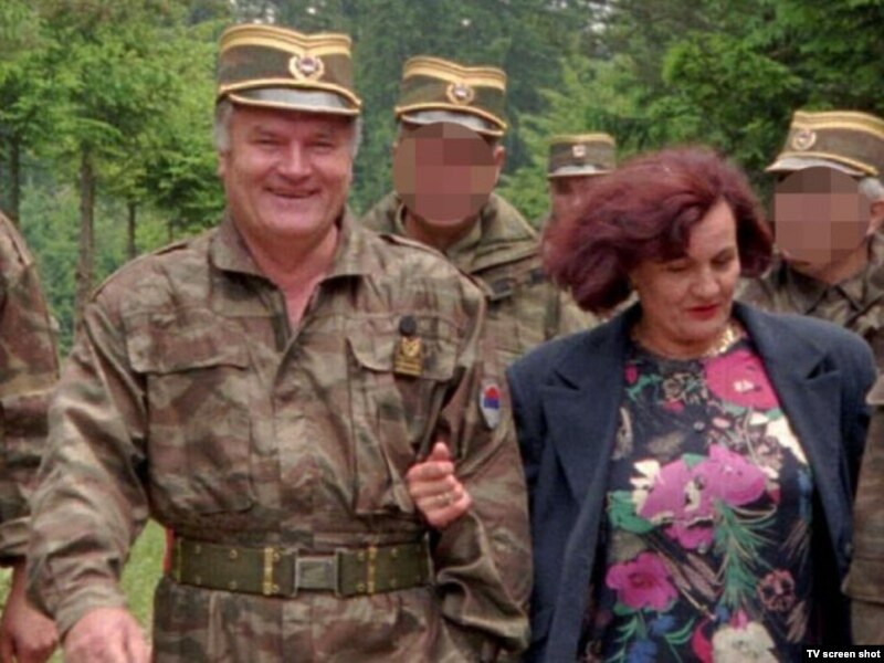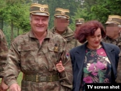 Screen grab shows Bosnian Serb wartime military commander General Ratko Mladic with his wife, Bosiljka, with an FTV journalist in 2005.