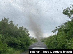The photos of swirling columns of mosquitos are causing a buzz online, but locals of Russia's Kamchatka Peninsula say the event is an annual "trouble" that darkens the sky every summer.